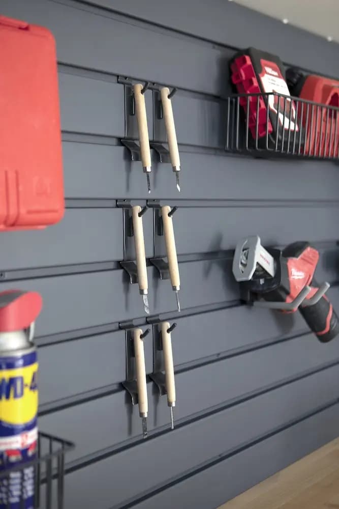 Garage slatwall is an attractive and protective way of increasing the storage capacity of your garage. The panels are impervious to mold, mildew, and water while acting as a protective barrier for your garage walls. The solid color extrusion process easily hides scratches and dings that would be noticed with a painted slatwall option.